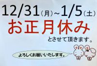 VOL,266 【年末年始のご案内】